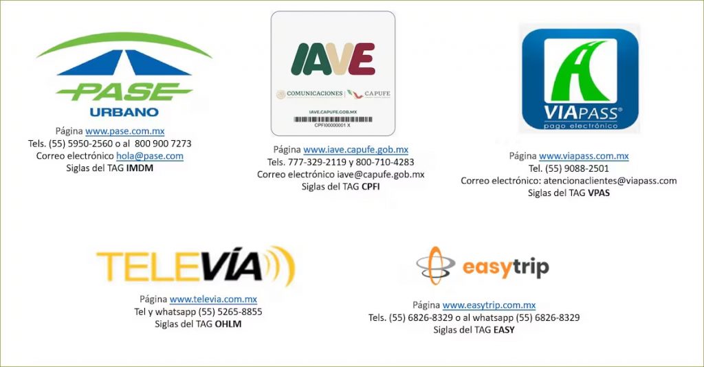 - VíaPASS que puedes adquirirlo enviapass.mx con cobertura en autopistas de occidente (Jalisco, Guanajuato, Aguascalientes, Nayarit), pero también funciona también en Capufe y otras autopistas interoperables.